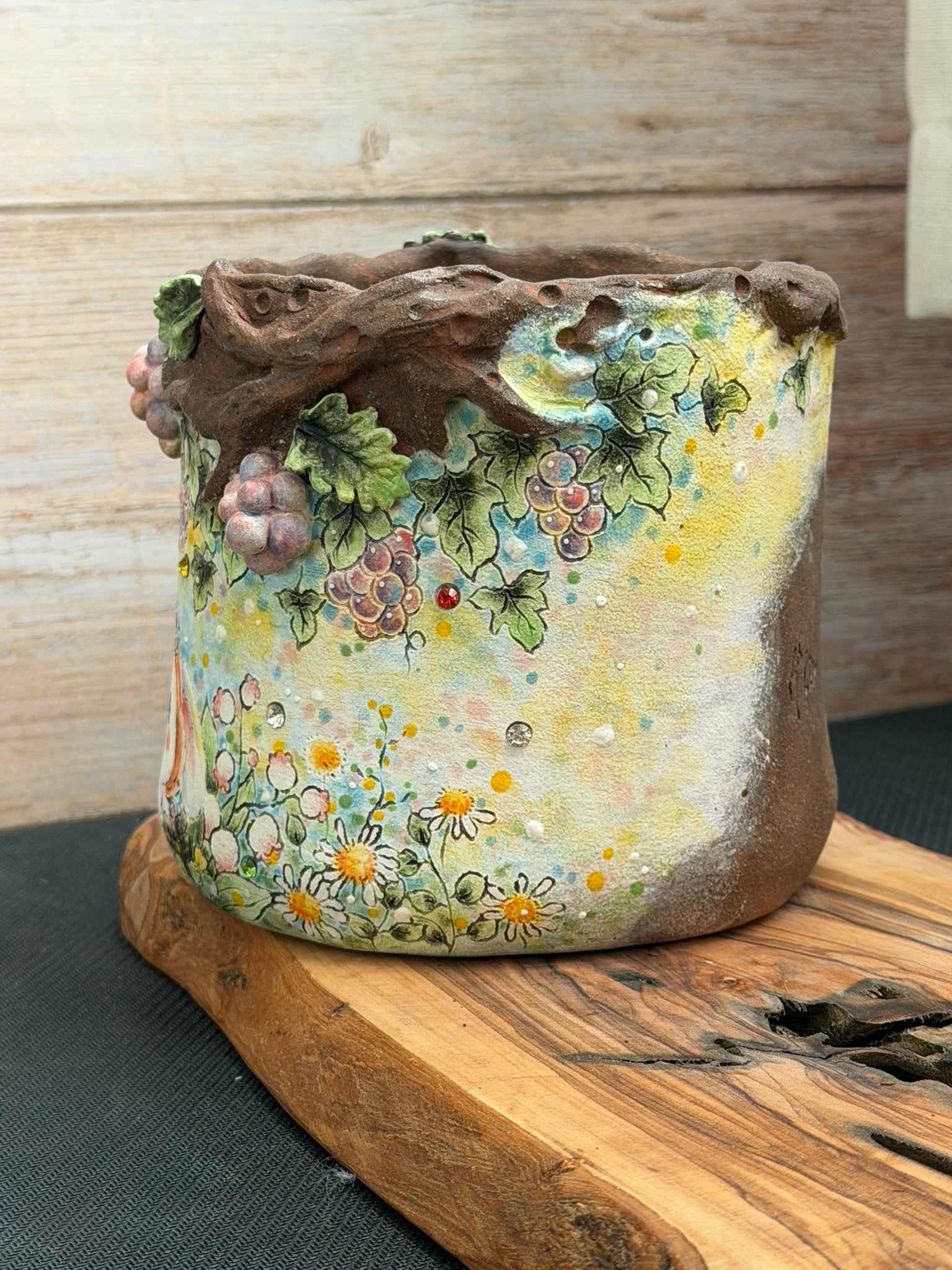 Add a touch of charm to your space with this unique, one of a kind hand-painted succulent planter. Crafted with moisture-absorbing material, it naturally draws excess water away from the soil—helping prevent overwatering and keeping your succulents happy and healthy.