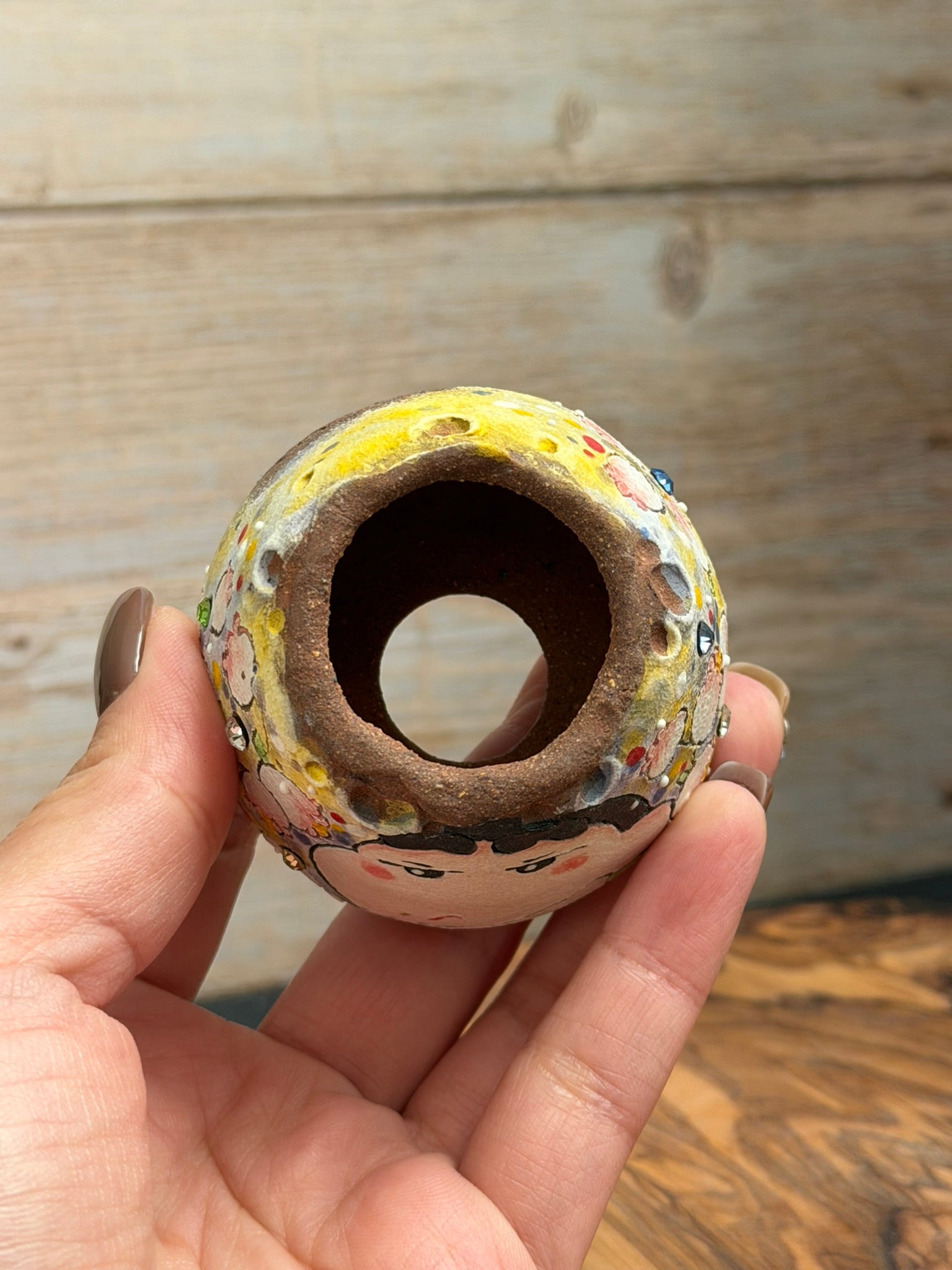 Add a touch of charm to your space with this unique, one of a kind hand-painted succulent planter. Crafted with moisture-absorbing material, it naturally draws excess water away from the soil—helping prevent overwatering and keeping your succulents happy and healthy.