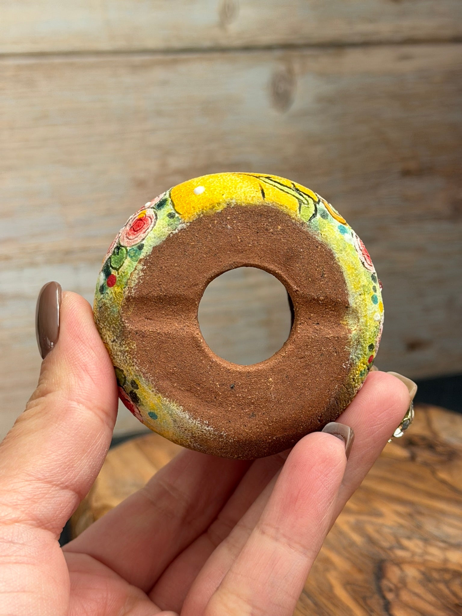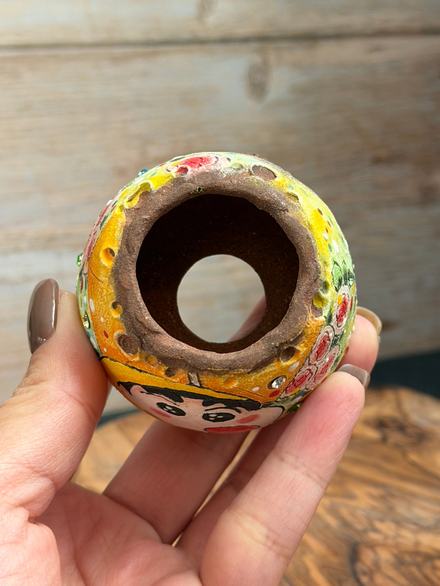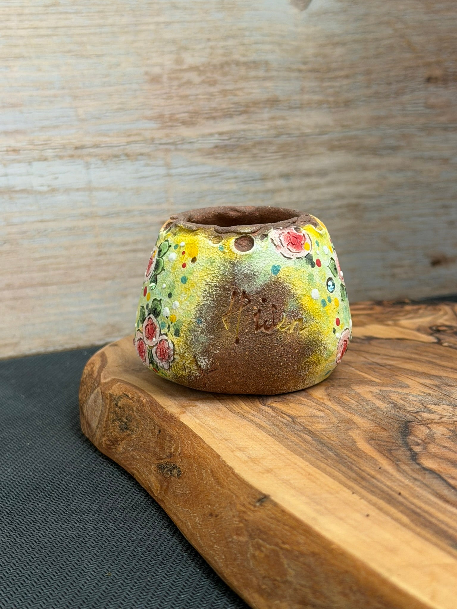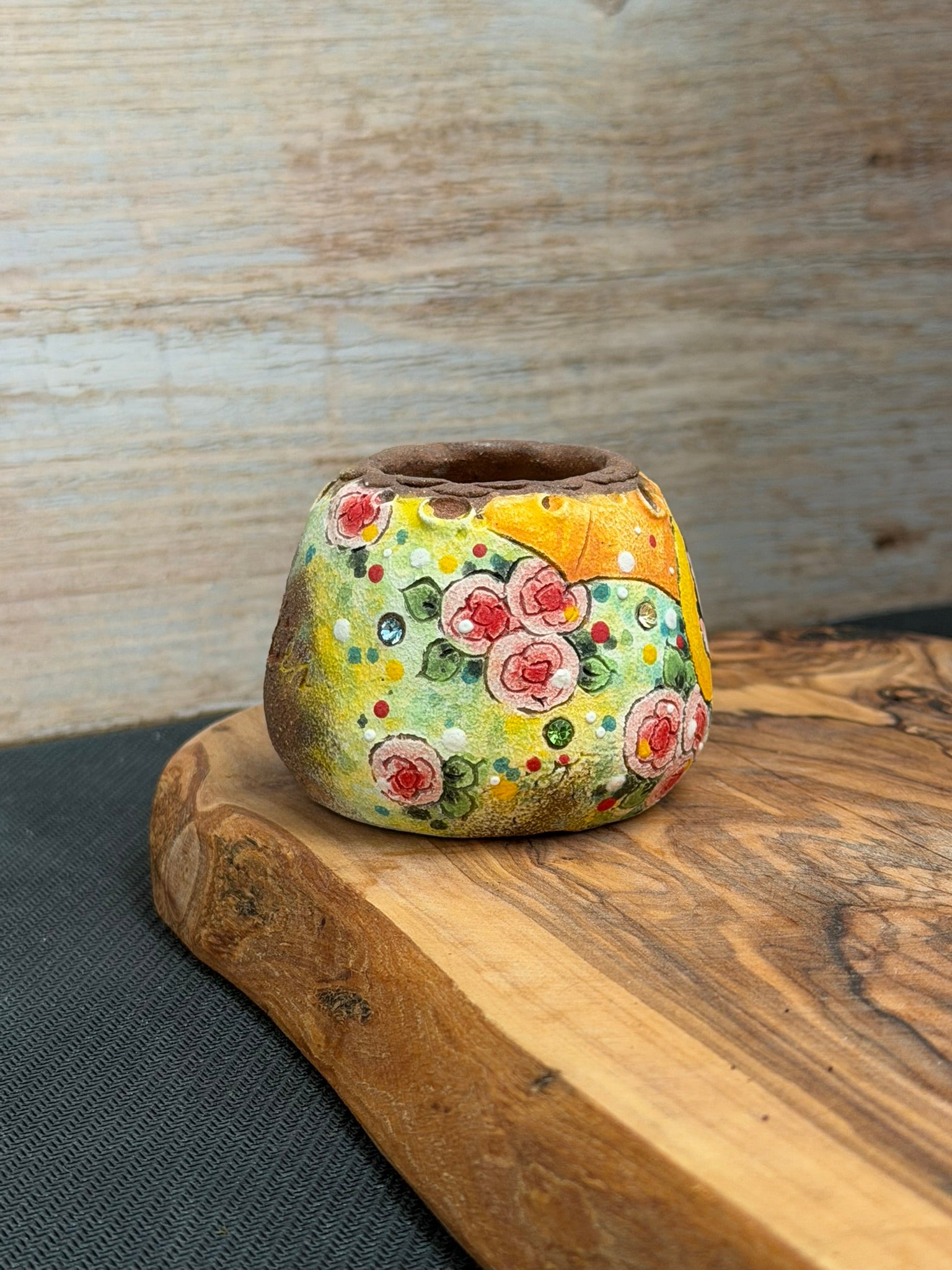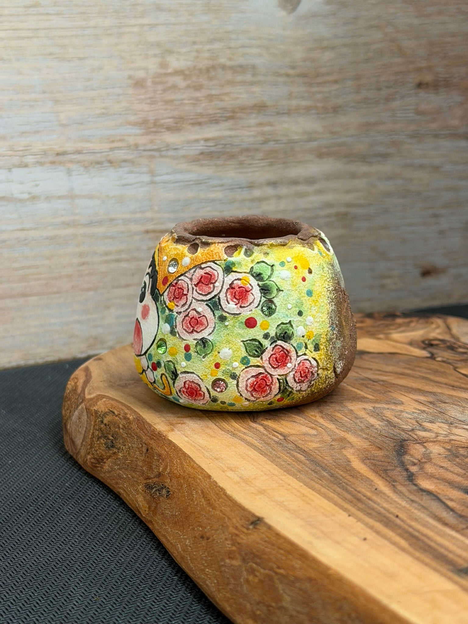 Add a touch of charm to your space with this unique, one of a kind hand-painted succulent planter. Crafted with moisture-absorbing material, it naturally draws excess water away from the soil—helping prevent overwatering and keeping your succulents happy and healthy.