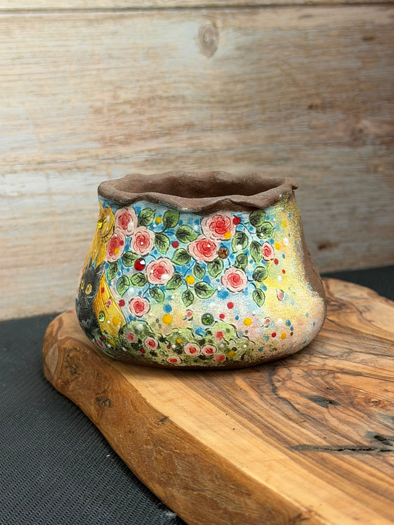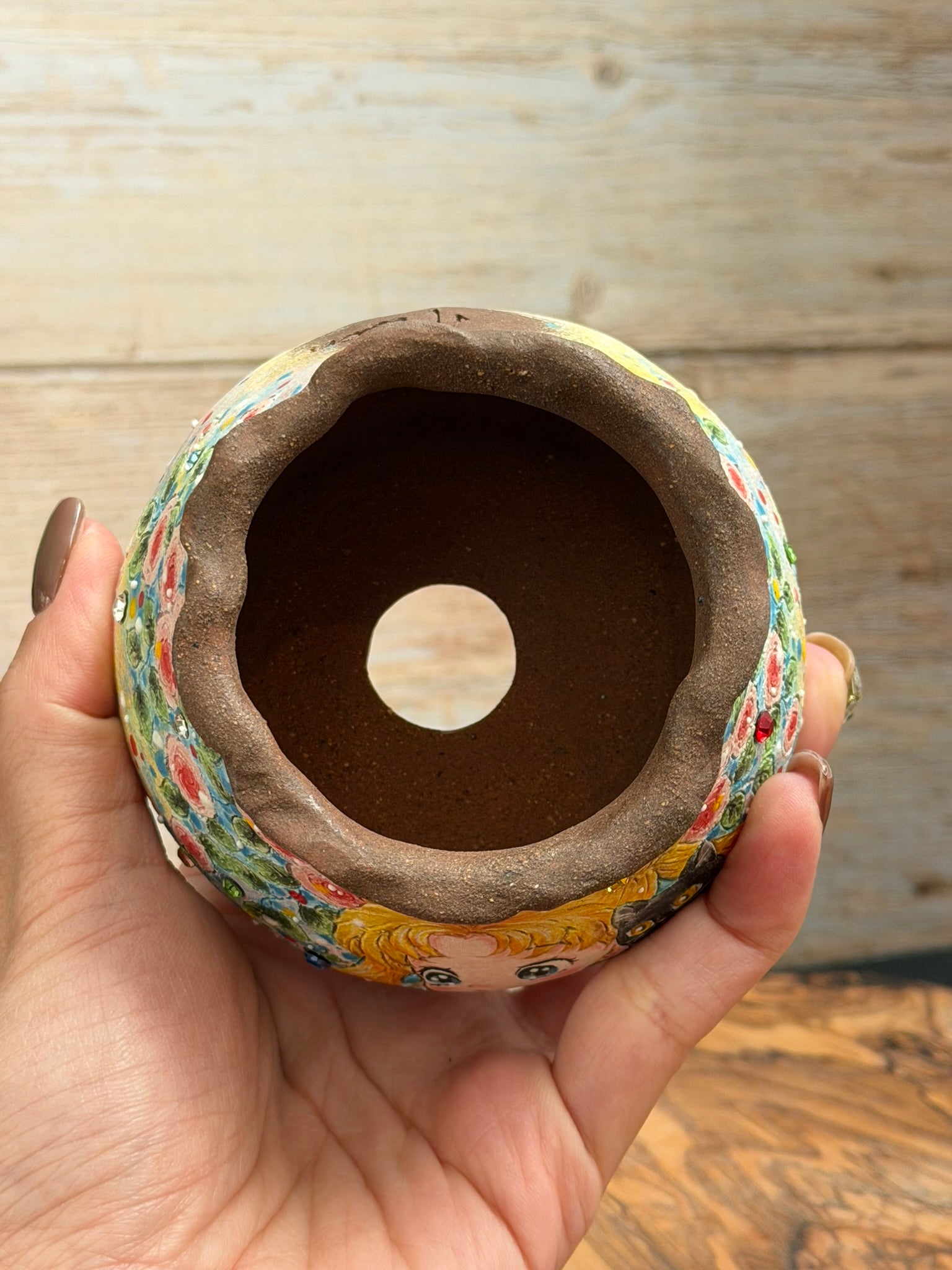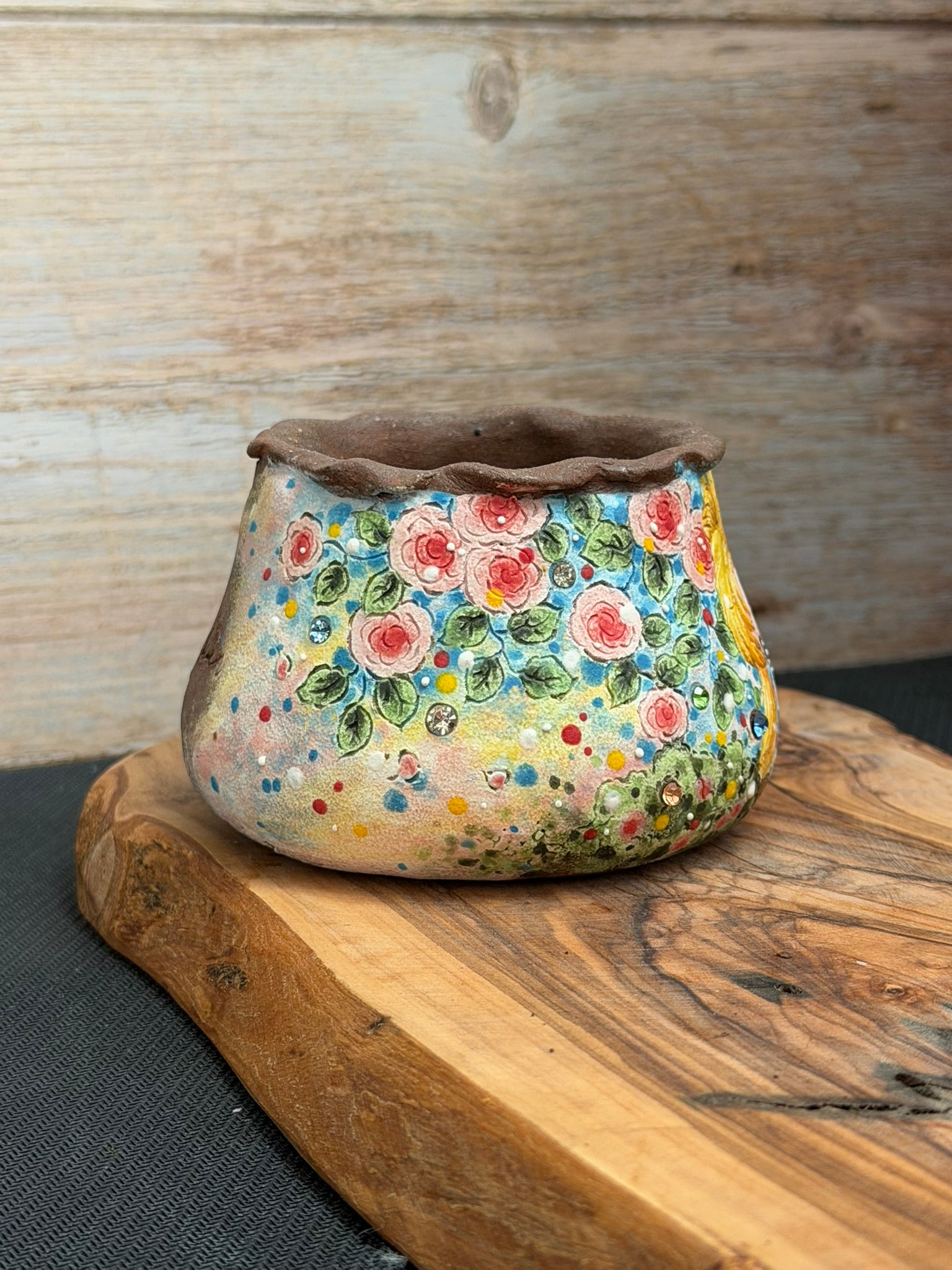Add a touch of charm to your space with this unique, one of a kind hand-painted succulent planter. Crafted with moisture-absorbing material, it naturally draws excess water away from the soil—helping prevent overwatering and keeping your succulents happy and healthy.