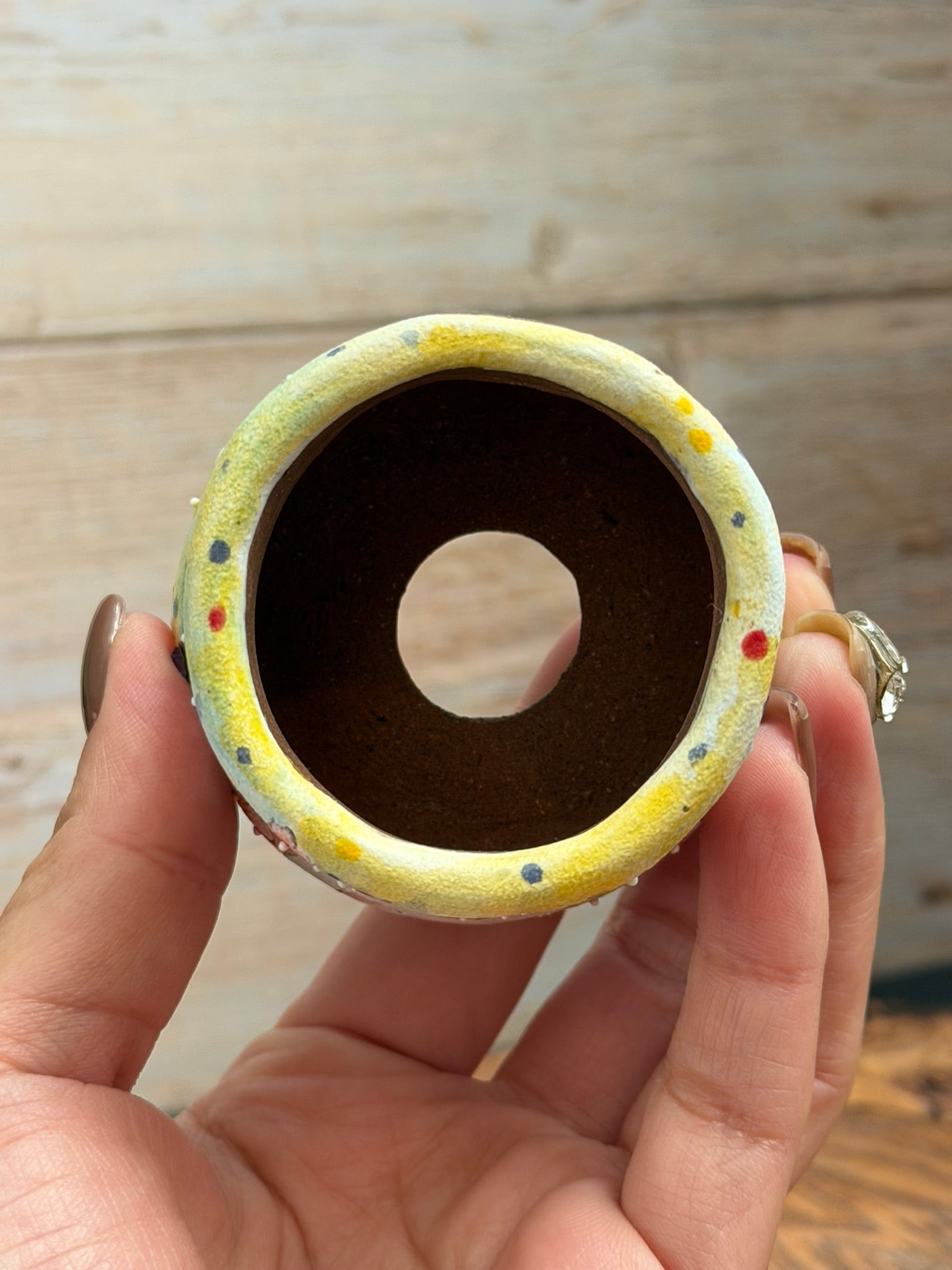 Add a touch of charm to your space with this unique, one of a kind hand-painted succulent planter. Crafted with moisture-absorbing material, it naturally draws excess water away from the soil—helping prevent overwatering and keeping your succulents happy and healthy.