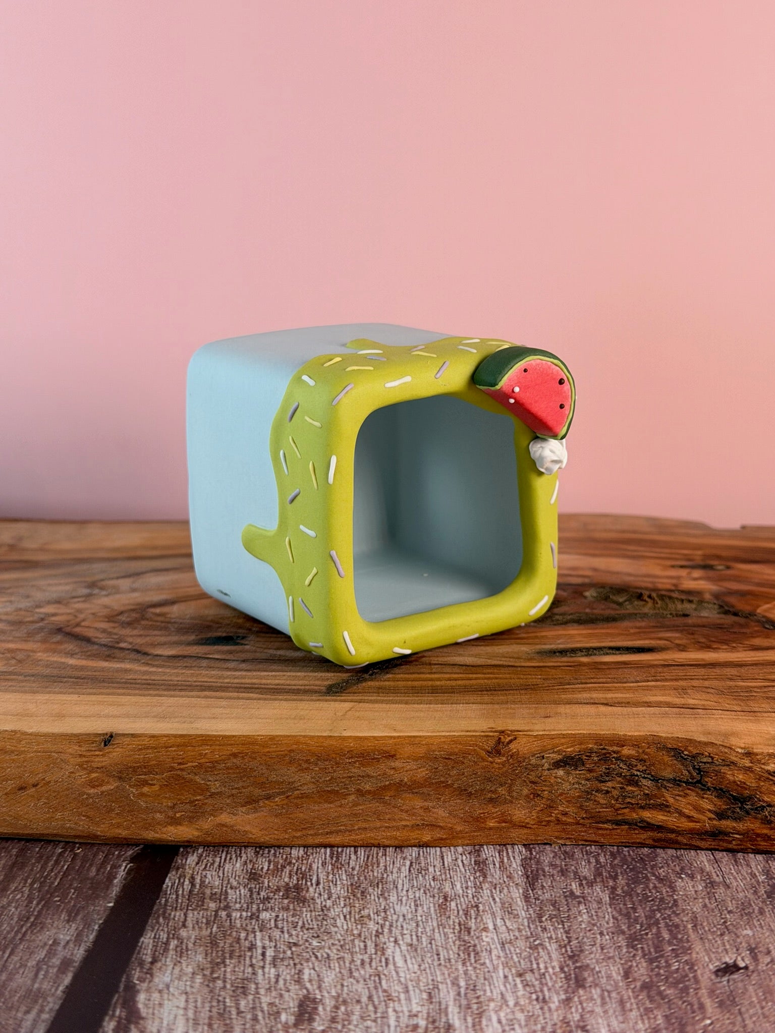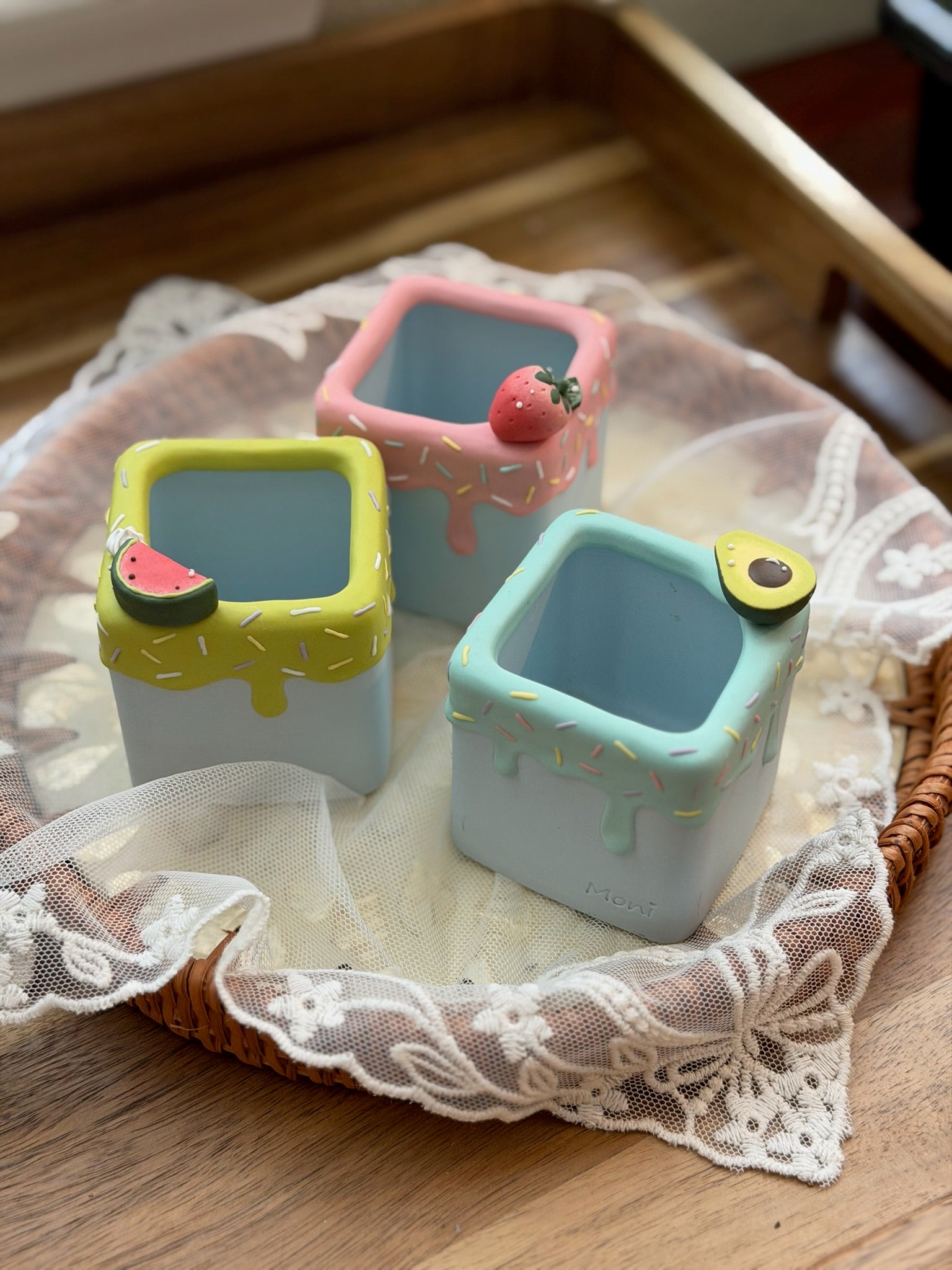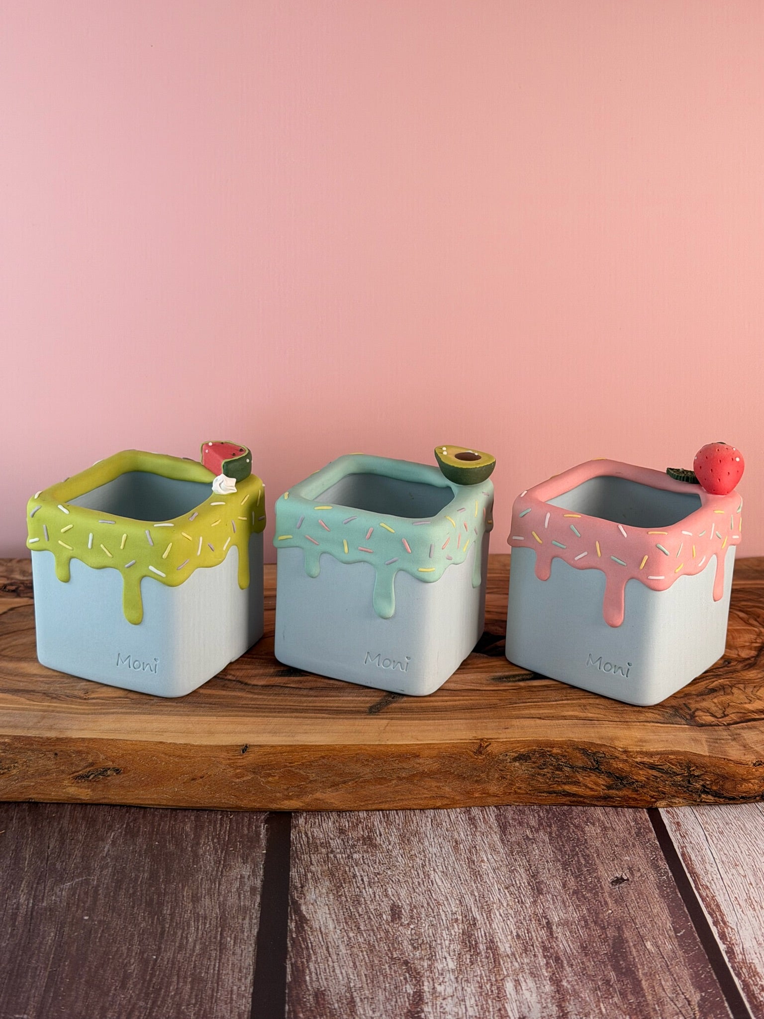 Handmade Ice Cream Cake with Fruits and Sprinkles succulent planter