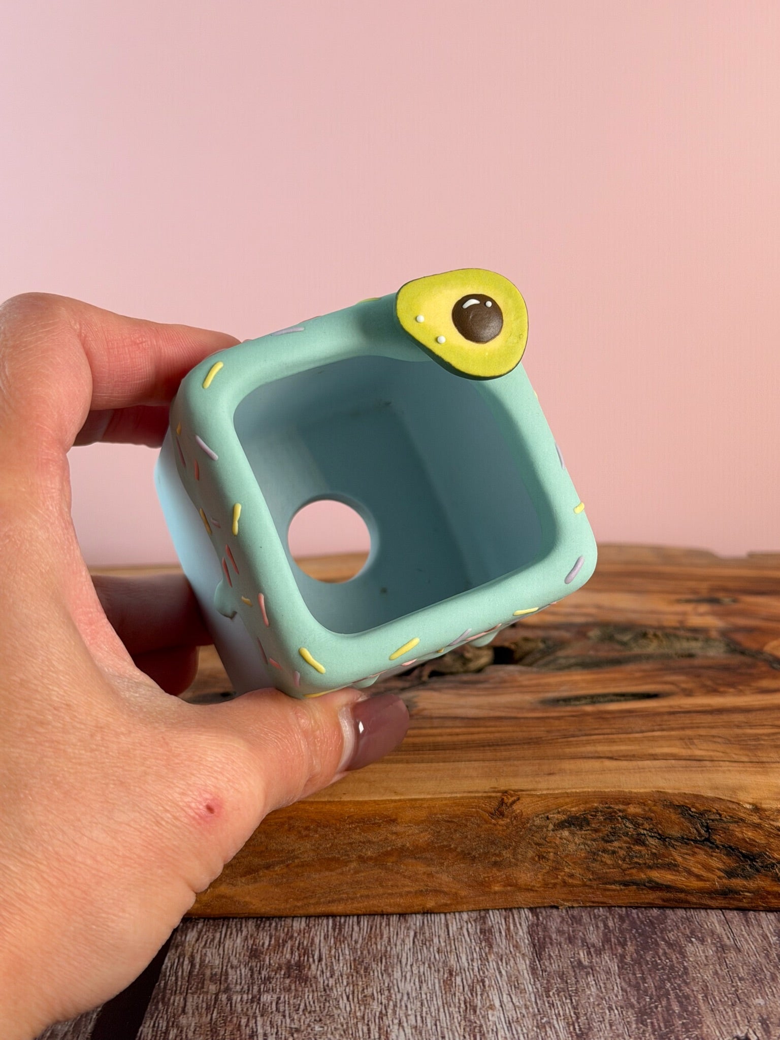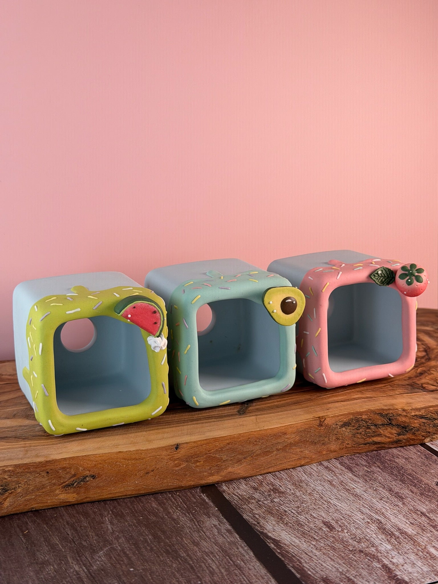 Add a touch of charm to your space with this unique, one of a kind hand-painted succulent planter. Crafted with moisture-absorbing material, it naturally draws excess water away from the soil—helping prevent overwatering and keeping your succulents happy and healthy.