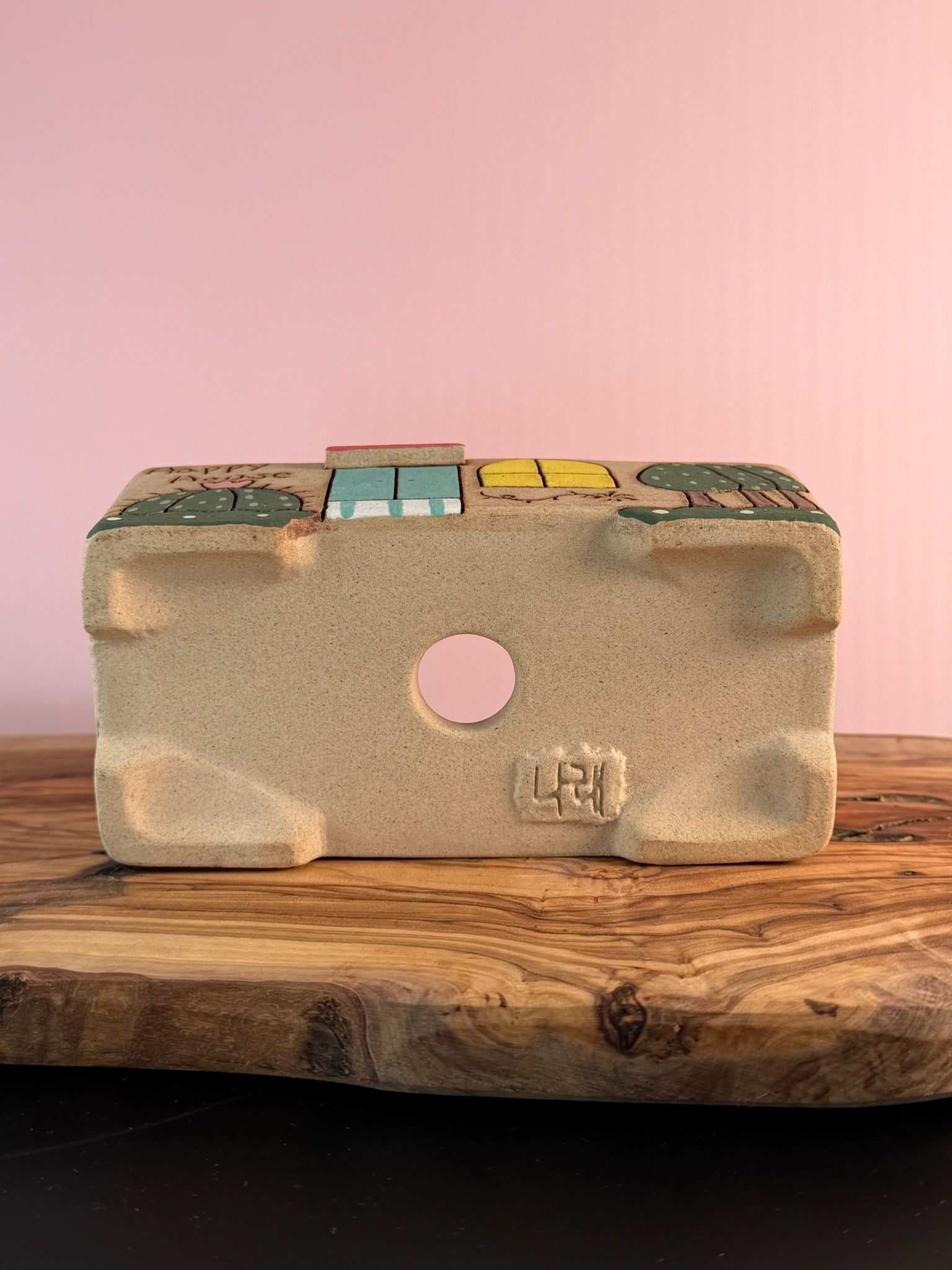 Add a touch of charm to your space with this unique, one of a kind hand-painted succulent planter. Crafted with moisture-absorbing material, it naturally draws excess water away from the soil—helping prevent overwatering and keeping your succulents happy and healthy.